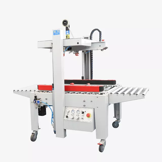 Заклейщик коробов FXJ-5050QS относится к категории полуавтоматического упаковочного оборудования. Функция оператора заключатся в прикрытии верхних клапанов коробов перед подачей в рабочую зону и визуальном контроле процессов упаковки.